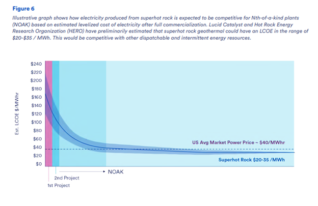 These very deep wells are expensive to drill. Drilling will require large sums of capital but once the capital expenditure is made, there will be low operating costs. The normal cost of fuel that must be purchased continually for nuclear, coal, natural gas and crude oil operations is not required. But the provider of capital must be confident of a decent return before the project can start. Eventually costs of 20-35 dollars per megawatt hour are expected.