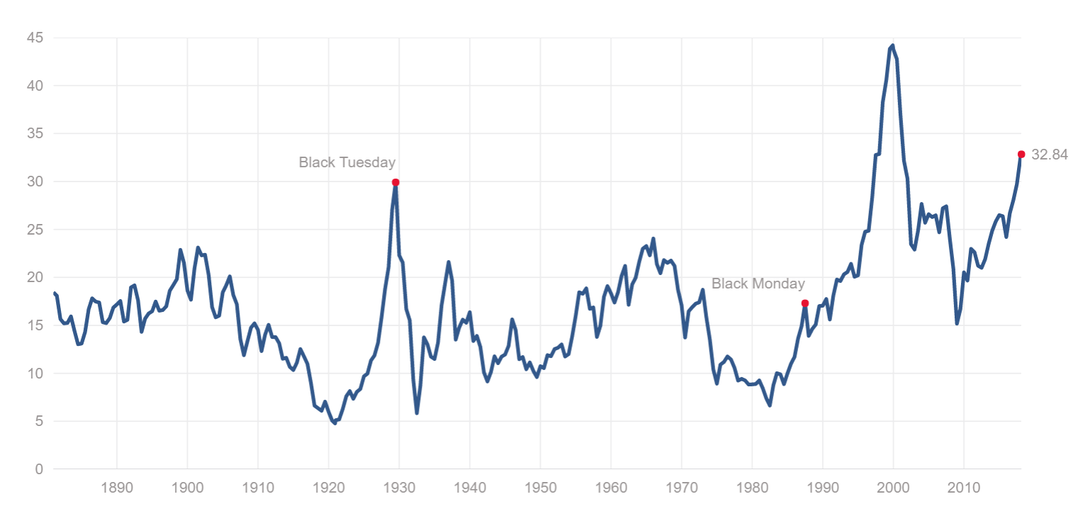 Shiller’s cyclically-adjusted price-to-earnings ratio for the S&P 500