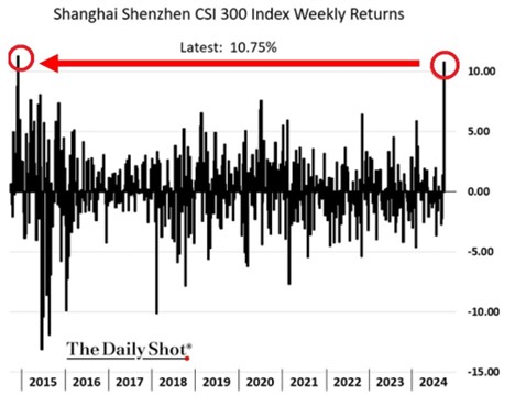 China entered full panic mode, announcing stimulus measures to counteract the deflationary impact of weak property prices.