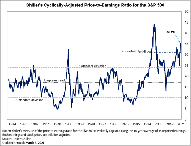 Robert Shiller’s well-regarded CAPE method of valuing stocks shows clearly how the last three decades have been bereft of bargains.