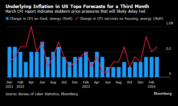 In a shocking report that showed inflation rising faster than expected for the third consecutive month, traders’ hope for a cycle of aggressive rate cuts evaporated. Shelter costs remained sticky with rents going higher.