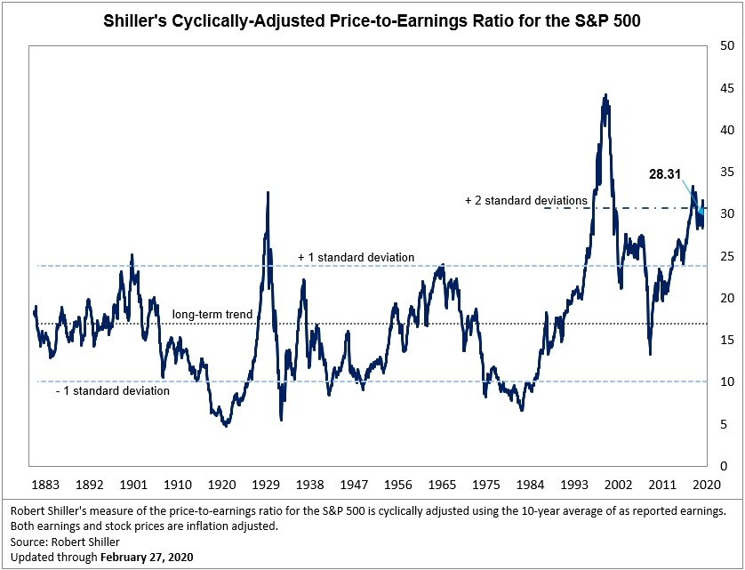First, there’s the Shiller Cyclically Adjusted Price Earnings Ratio, or CAPE.