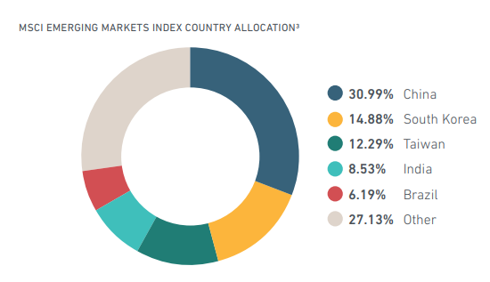China dominates the weighting in the MSCI Emerging Markets, with a weighting of 31 percent. This means that China is too big to ignore for institutional investors that have a mandate to invest globally.