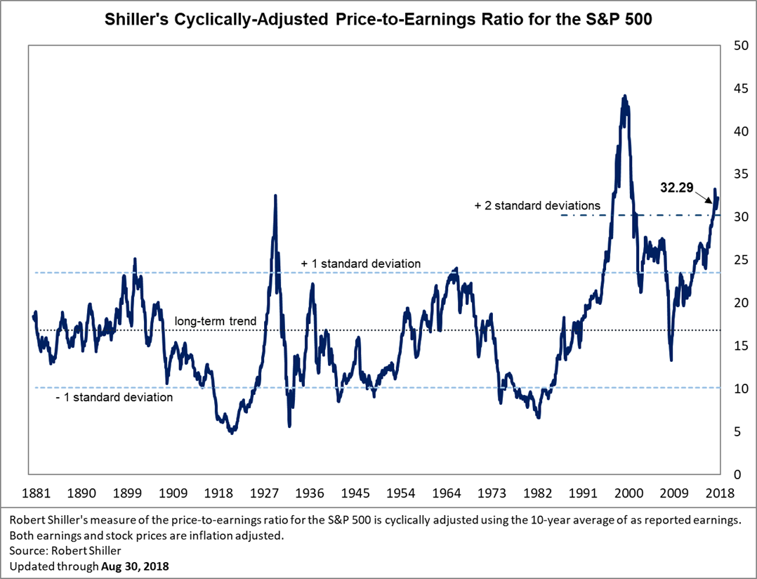The U.S. stock market is very expensive today, using the Robert Shiller Cyclically-adjusted Price-to-Earnings Ratio: