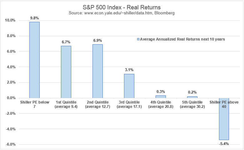 The S&P 500, even after the October correction, is still in the 5th quintile, meaning that positive real returns are likely to be much smaller in the future.