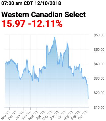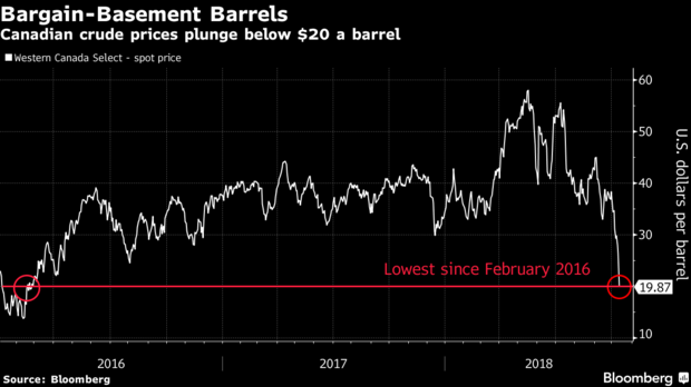 But in Canada, the Western Canada Select (WCS) price is below US$20.