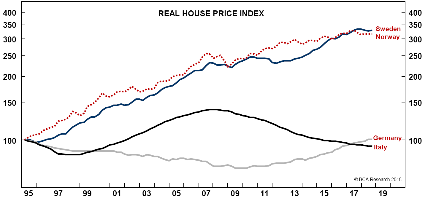 One of the BCA’s researchers pointed out that real estate in Germany and Italy is still exceptionally cheap. On the other hand, Sweden and Norway are expensive, on par with Canada. There are a few companies in Europe, such as Deutsche Wohnen, that give exposure to inexpensive real estate markets. Or, this could be a great time to buy that Tuscany villa that you’ve always coveted (not recommended, of course).