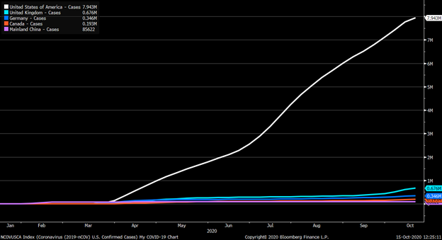 But now there is a second wave coming in some countries with the United Kingdom leading the way. The United Kingdom is reporting more than 40,000 active cases, more than double the level in April during the initial outbreak.