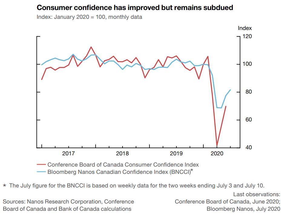 The July 2020 BOC Monetary Policy report hows that consumers have reduced spending: