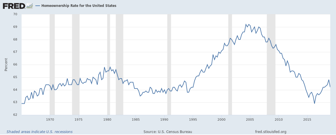 But this economic expansion has been sub-par. After the worst recession since the 1930s, it would have been normal to see a strong recovery. But the U.S. economy didn’t respond as expected. For example, the housing sector has been relatively weak. Housing is one area where the Fed believes it can stimulate directly when interest rates are lowered. But home ownership rates are still near the lowest level of the last four decades.