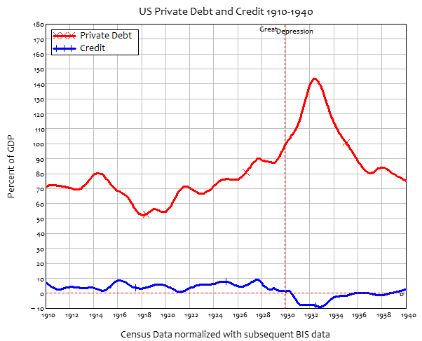 “In the five years leading to 1928, {U.S.} private debt grew by $40 billion or 34 percent.”