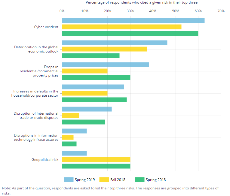 A deterioration in the global economic outlook is increasingly cited as an important risk to the Canadian financial system