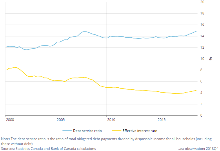 After being steady for years, the debt-service ratio has recently risen due to higher rates