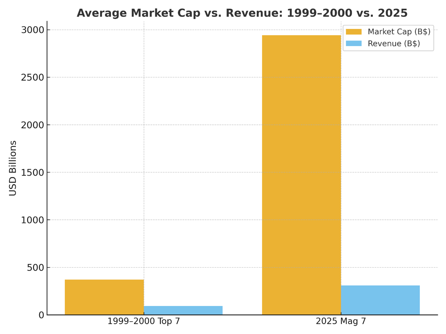 - The Mag 7 is worth 8× more than the top 7 of 2000.
