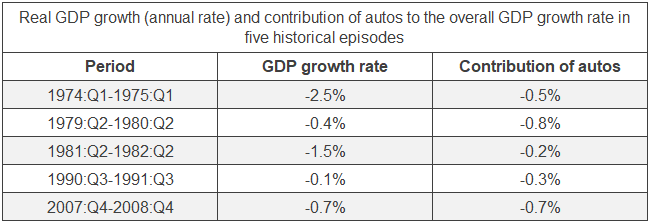 While some people, like me, might react by thinking the connection between oil and automobiles and the economy is weaker than in the 1970s another paper published by NBER, “Oil, Automobiles, and the U.S. Economy: How much have things really changed?” by Valerie Ramey and Daniel Vine finds that the relationship is still strong.