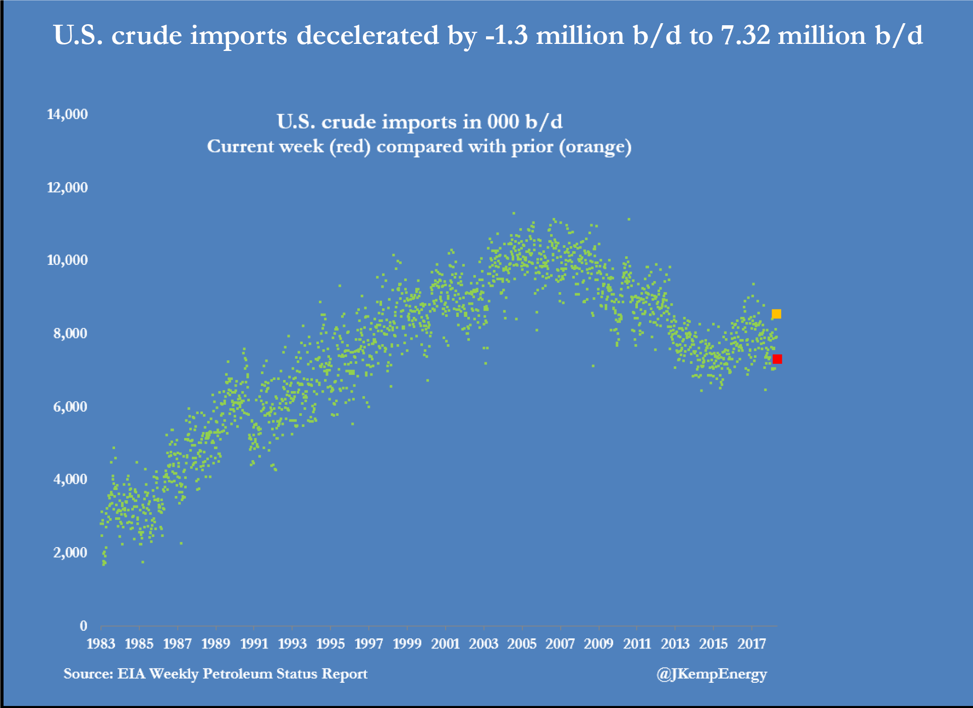 Most of the imports come from Canada, currently 3.5 to 4 million barrels a day. With the surge in prices U.S. shale oil production can be expected to increase to record highs, reducing the need for Canadian imports.