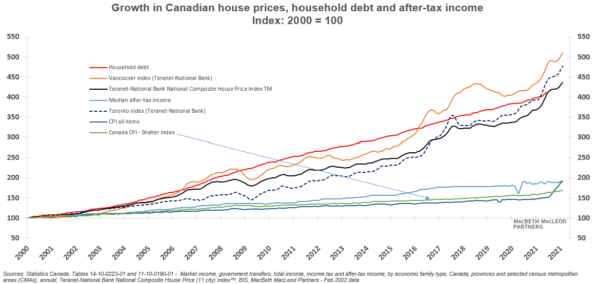 In 2022 house prices and household debt are all well over 400, with Vancouver over 500.