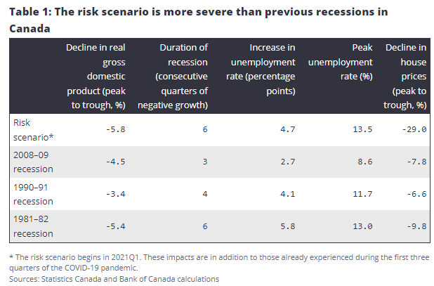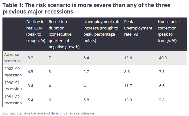 In 2019 the BOC showed these assumptions, which appear to be based on the severity of the 2009 downturn in the US:
