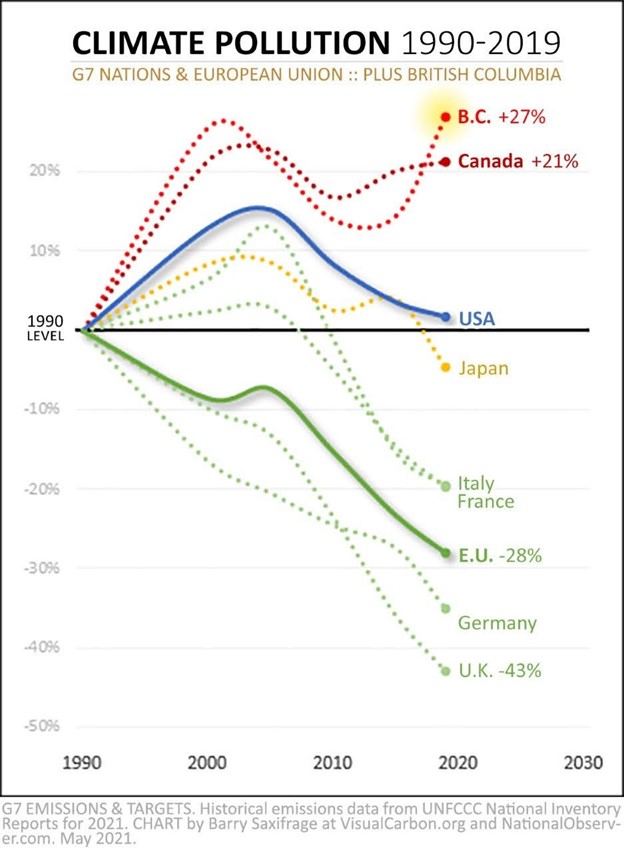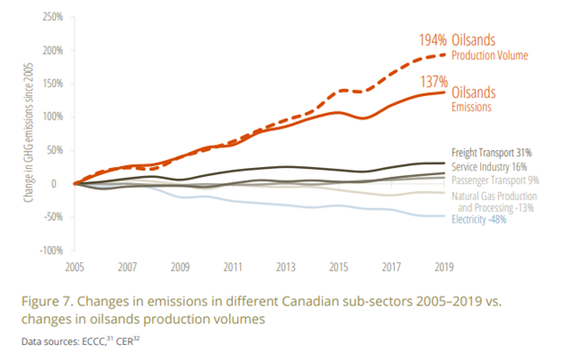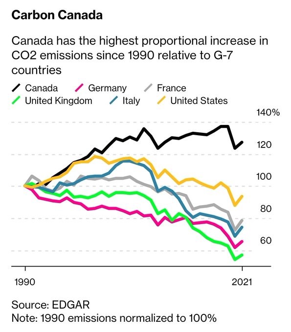 And Canada also has the largest increase in emissions of the G7, mostly due to the expansion of oilsands extraction.