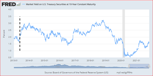 In 2013 when the Fed tried to exit the QE program the markets threw a tantrum, government bond yields jumped from 2 percent to 3 percent and the Fed backed down.
