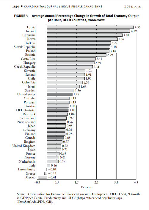 From Finances of the Nation: The Canadian Productivity Landscape – An overview” Andrew Sharpe and Tim Sargent Centre for the Study of Living Standards Canadian Tax Journal 2023.