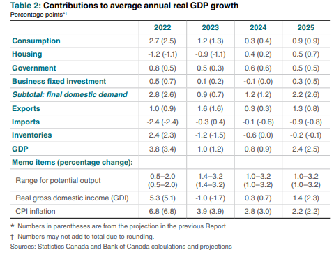 And that puts the Bank of Canada in a tough spot as the economy is weak and getting weaker. The BOC forecasts growth of 0.8 percent for 2024: