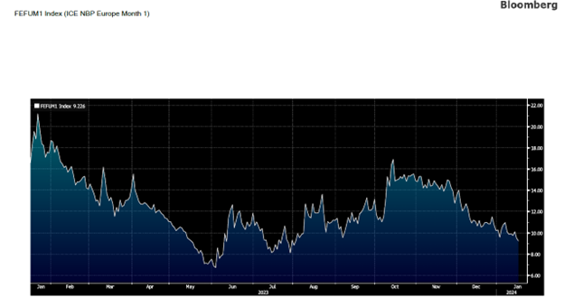Natural gas in Europe in USD is priced at one-half from a year ago.