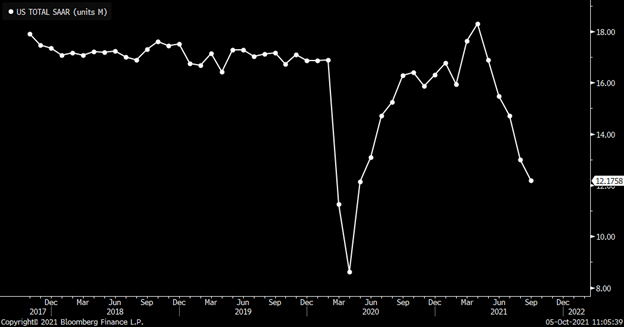 Vehicle sales in the all-important U.S. market slumped in the third quarter. At an annualized 12 million units, sales are about 1/3 below the greater than 18 million peak.