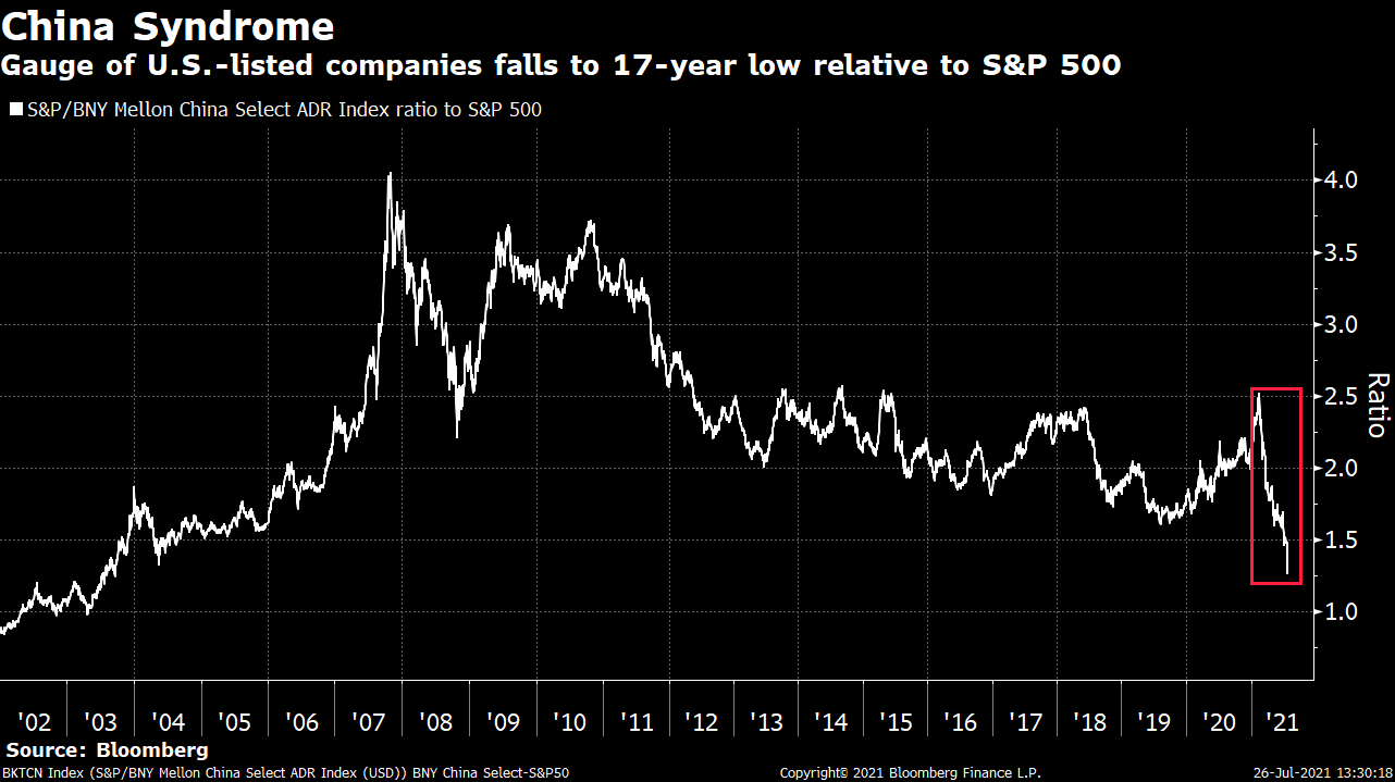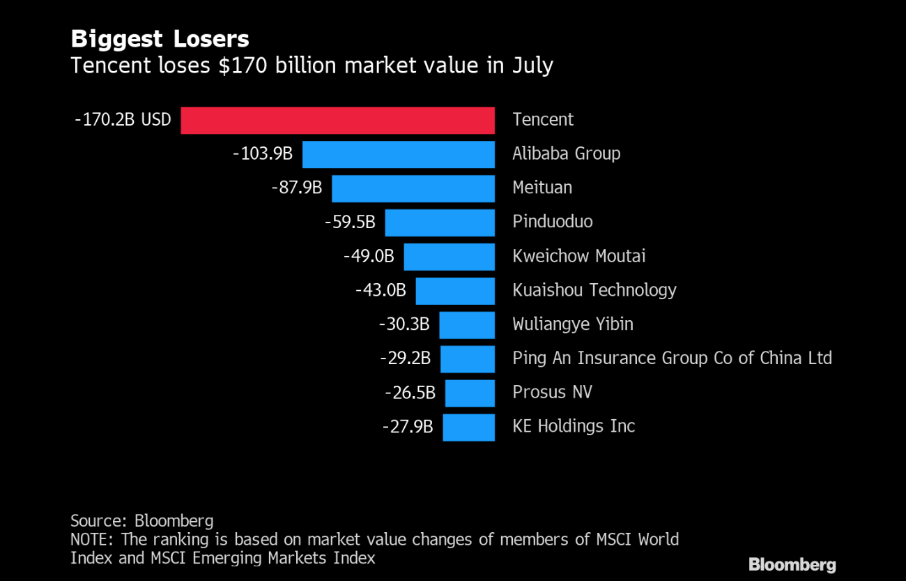 The highest valued Chinese technology company, Tencent, lost $100 billion in market value during the first two days of trading this week. WeChat, a Tencent subsidiary with 1 billion users, was forced to undergo a “security technical upgrade” prompted by a regulator. Investors viewed this as another attack on an important tech company.