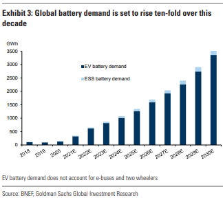 This means that battery demand will have to grow by 10x or more to provide storage for light vehicles and also for long-term storage, ESS, which is used for the electric grid.