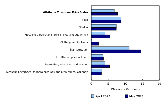 The inflation rate in Canada hit a new high for this cycle as it reached 7.7 percent growth.