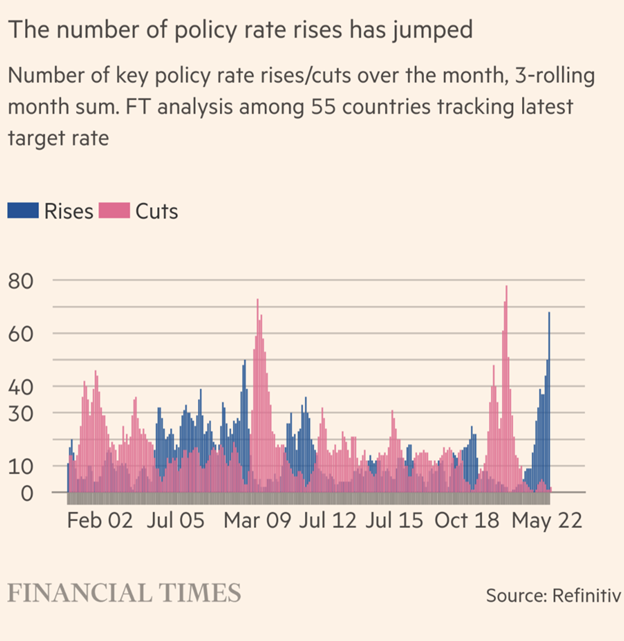The increase in rates may also trigger a recession if the central banks are determined to get inflation under control.
