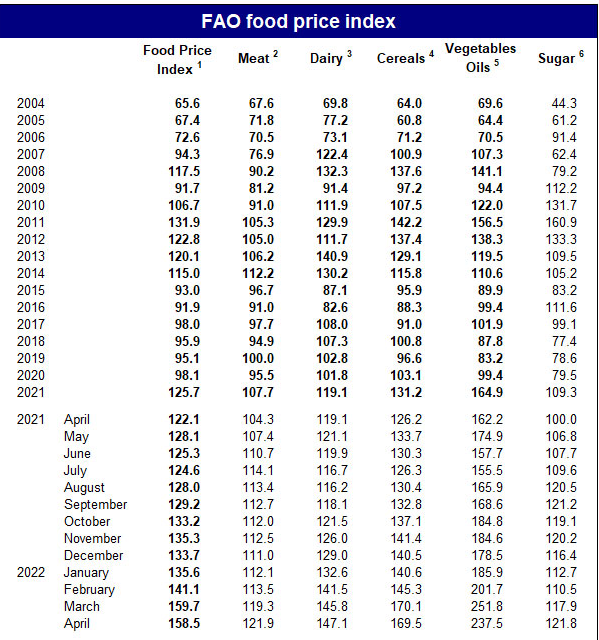 And it is not just grains. Dairy prices are up 23 per cent from last year worldwide and vegetable oils even more.
