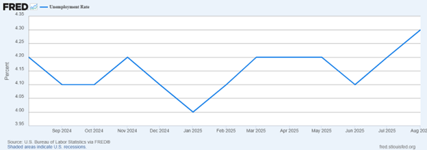 Inflation has inched higher — from 2.7 percent in July to 2.9 percent in August. Core inflation ticked up to 3.1 percent, with shelter costs still climbing above 4 percent. Food, rent, and services are all running above 3 percent. Goods’ inflation, however, remains subdued despite tariffs that were supposed to push prices up. Maybe tariff related inflation is coming soon.
