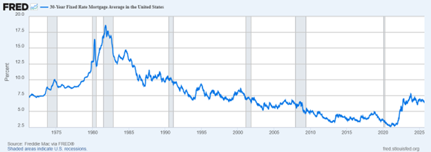 The 30-year mortgage rate sits at 6.35 percent — high compared to 2010-22, but normal for most of the last 50 years. Since monetary policy works mainly through housing, Powell knows lower rates are needed to revive demand. But cheaper mortgages also mean higher home prices, which feed directly into CPI via shelter costs. That’s the Catch-22.