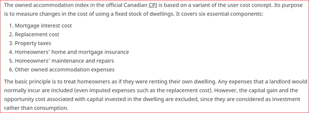 Here is an excerpt from Statistics Canada, showing how Statcan calculates shelter cost, which is the largest component of CPI at about 27 percent.