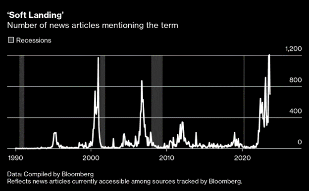 The term “soft landing” is interesting, for two reasons. First, increased searches for the term often precede a recession. And second, there are few instances of a “soft landing” historically. There is either continued economic growth or a real recession and seldom anything in between.