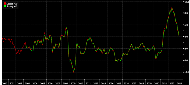 The official statement says that the Fed is committed to a 2 percent target for inflation. The US CPI declined to about 4 percent year-over-year for May 2023: